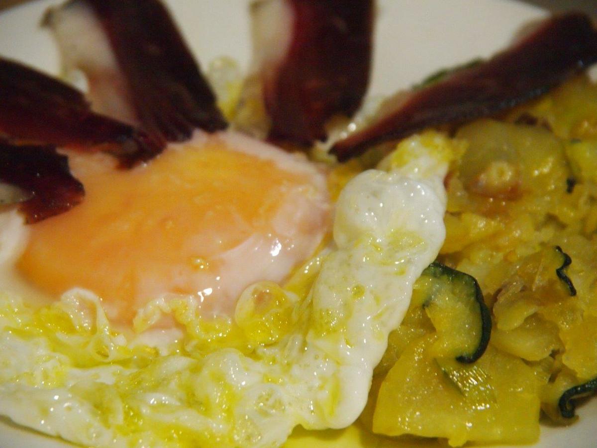 Huevo De Oca Frito Sobre Panadera De Calabacin Y Jamon De Pato Cocina