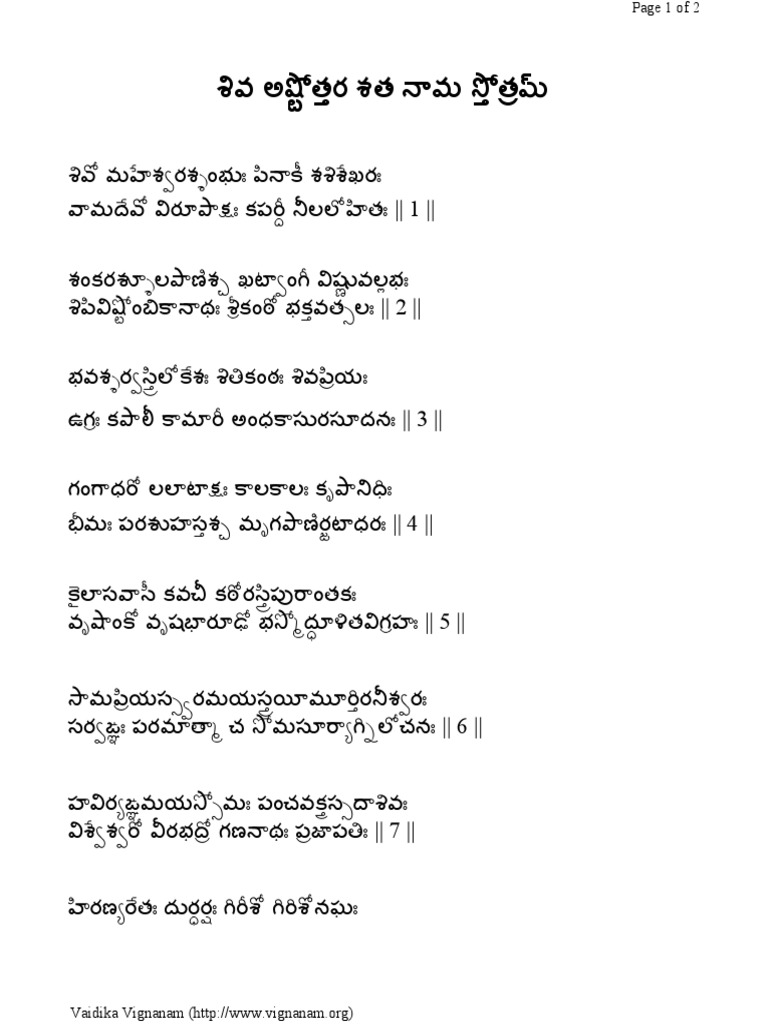 Shiva Ashtottara Sata Nama Stotram Telugu Large Pdf
